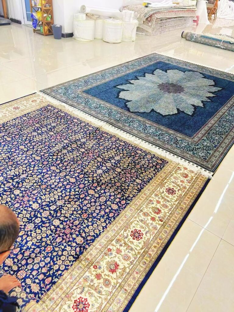 Blue Handmade Silk Carpets With Size 5x7ft And 8x10ft Were Delivered To Our Customer.