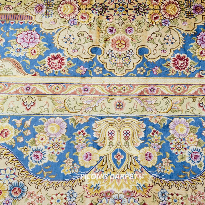 Yilong 9′ x 12′ Handmade Rug Persian Silk Carpet Blue Rug TJ914A